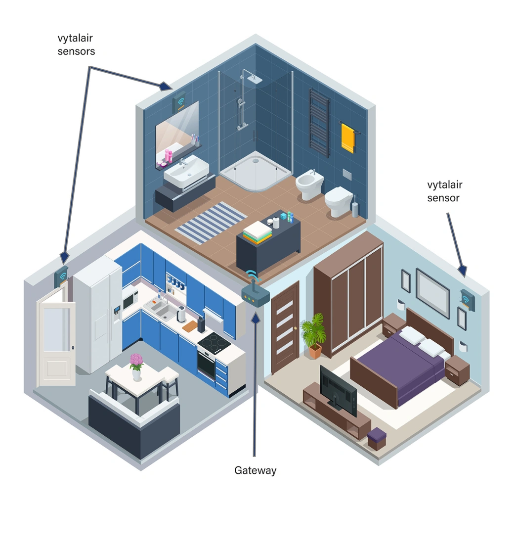vytalair offers a cutting-edge, data-driven solution for healthier home environments. Proactive monitoring with advanced sensors ensures early detection and intervention, reducing costs and improving tenant well-being.